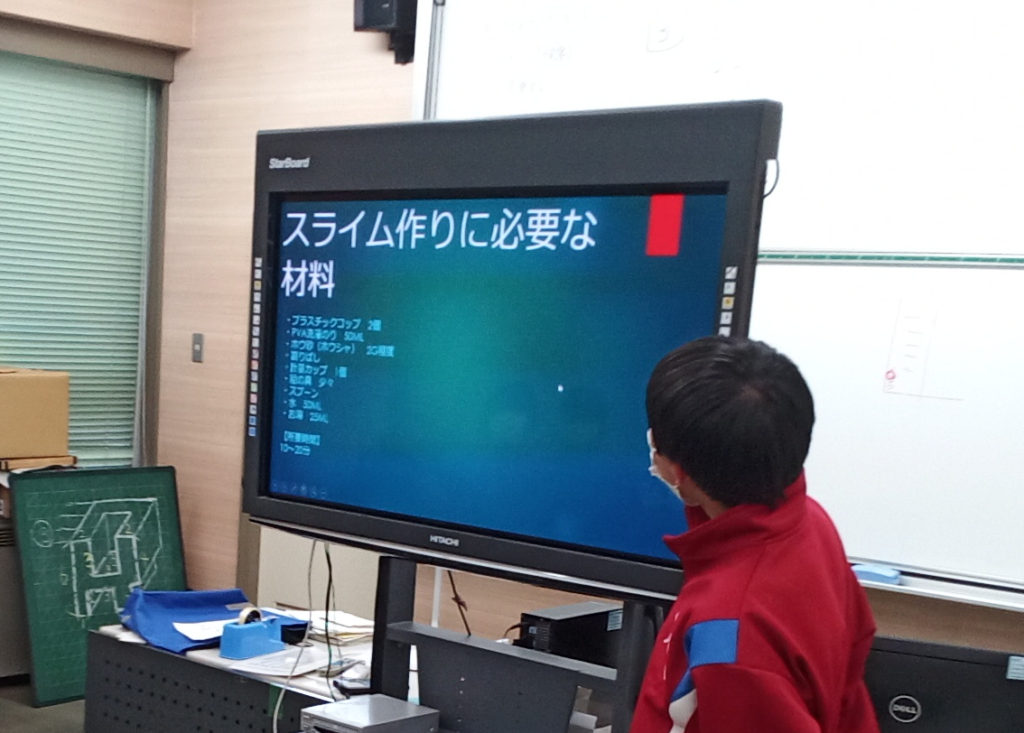 新入部員に科学部に入ってやりたいことをプレゼンしてもらいました。パワーポイントは初めてなのに、写真やアニメーションなどを使ってきれいなスライドができていました。