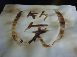 あぶり出し 紙を火であぶると、秘密の文字が浮き上がってきます。 今回は、ミョウバンの水溶液で絵や文字を描きました。実験するときは、近くに水槽を置いて火事にならないように注意しながら、慎重にあぶりました。 By asaitou | 2018年5月18日 | 校内の活動 | ← ポップコーン ぷよぷよ卵 →
