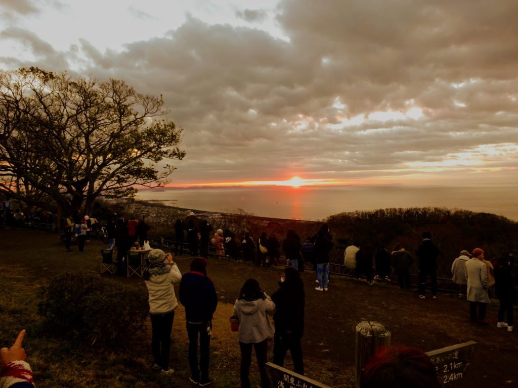 今年は雲と雲の間に少しだけ太陽が顔を出しました。上空に雲があったのは三浦半島辺りから手前でしょう。房総半島より東に雲が少なかったので、合間から太陽が見えたのでしょうね。
